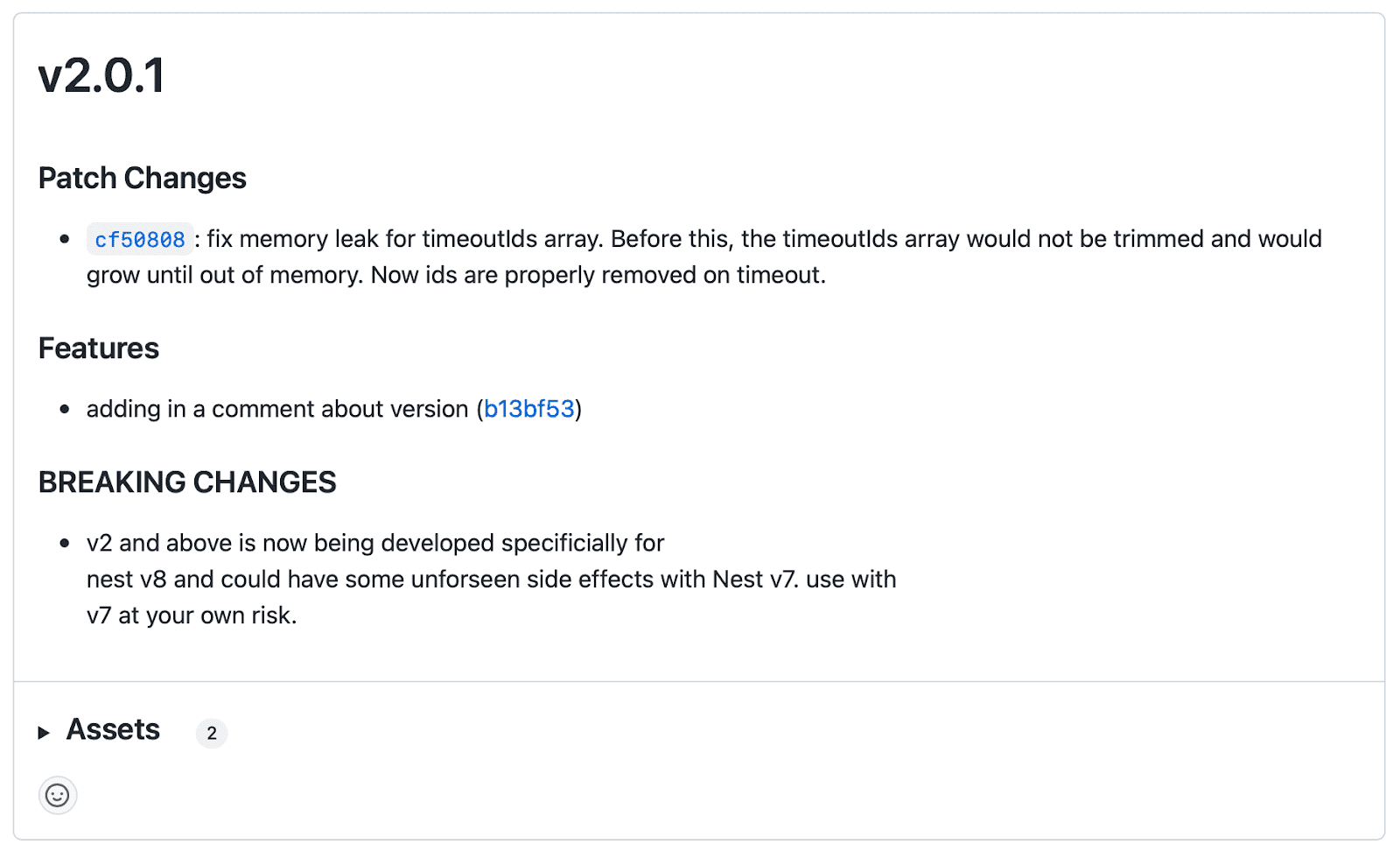 The package maintainers had already identified and fixed this in v2.0.1. The release notes confirmed it exactly: